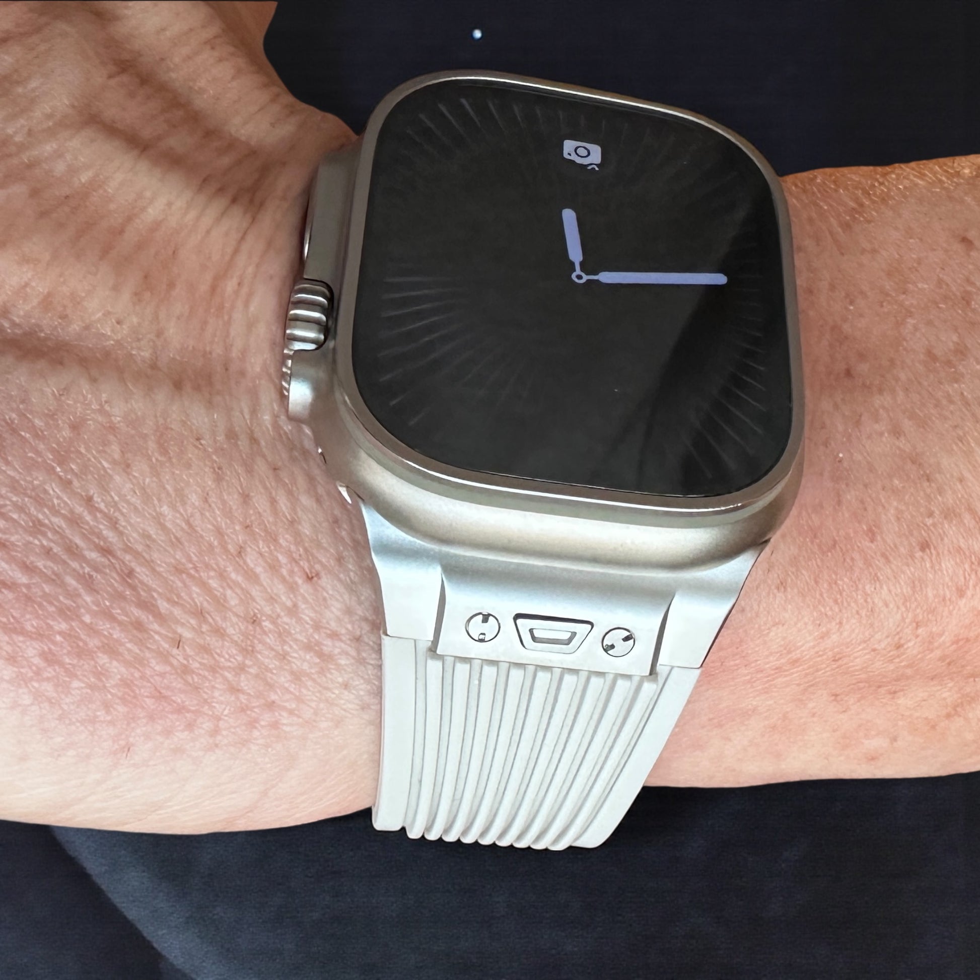 This premium silicone band fits Apple Watch models from 42mm through 49mm, making it a versatile choice whether you wear an Ultra or a Series watch. Soft, flexible, and refined — perfect for daily wear, workouts, and everything in between.