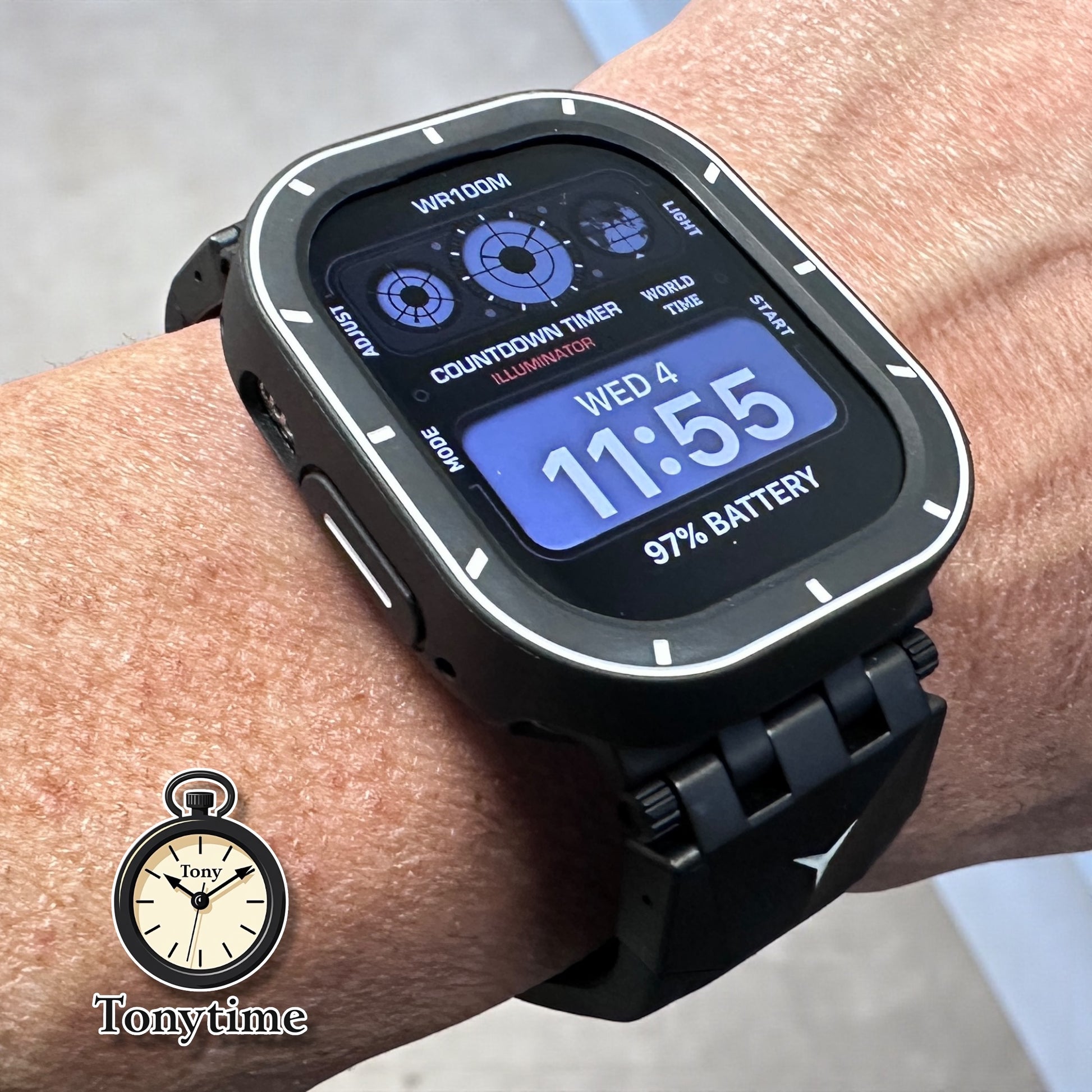 **I’ve created these Ultra Mod Kits that are actually functional in every day life and not overly cumbersome. I’ve personally worn other Ultra Mod kits, especially the ones that have the additional crown piece and found them to be far too large for daily wear and functionality was just too limited. Numerous crown pushes through the day made it overly frustrating to wear !! Built for customers who want their Apple Watch to feel like a high-end tactical timepiece.
