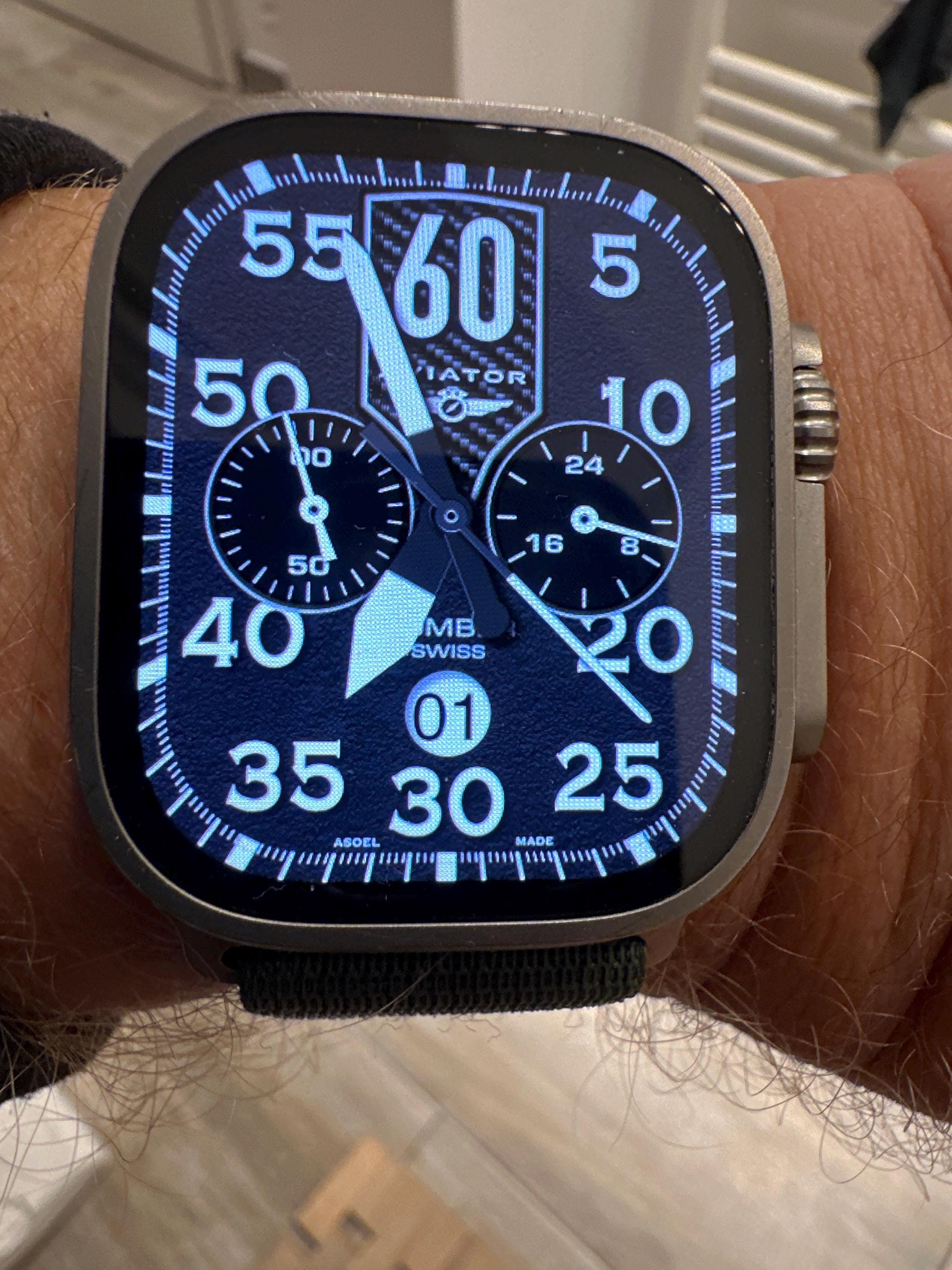 Take flight with this bold, aviator-style custom watch face — fully optimized for Apple Watch Ultra and Series 4+! ✈️⌚