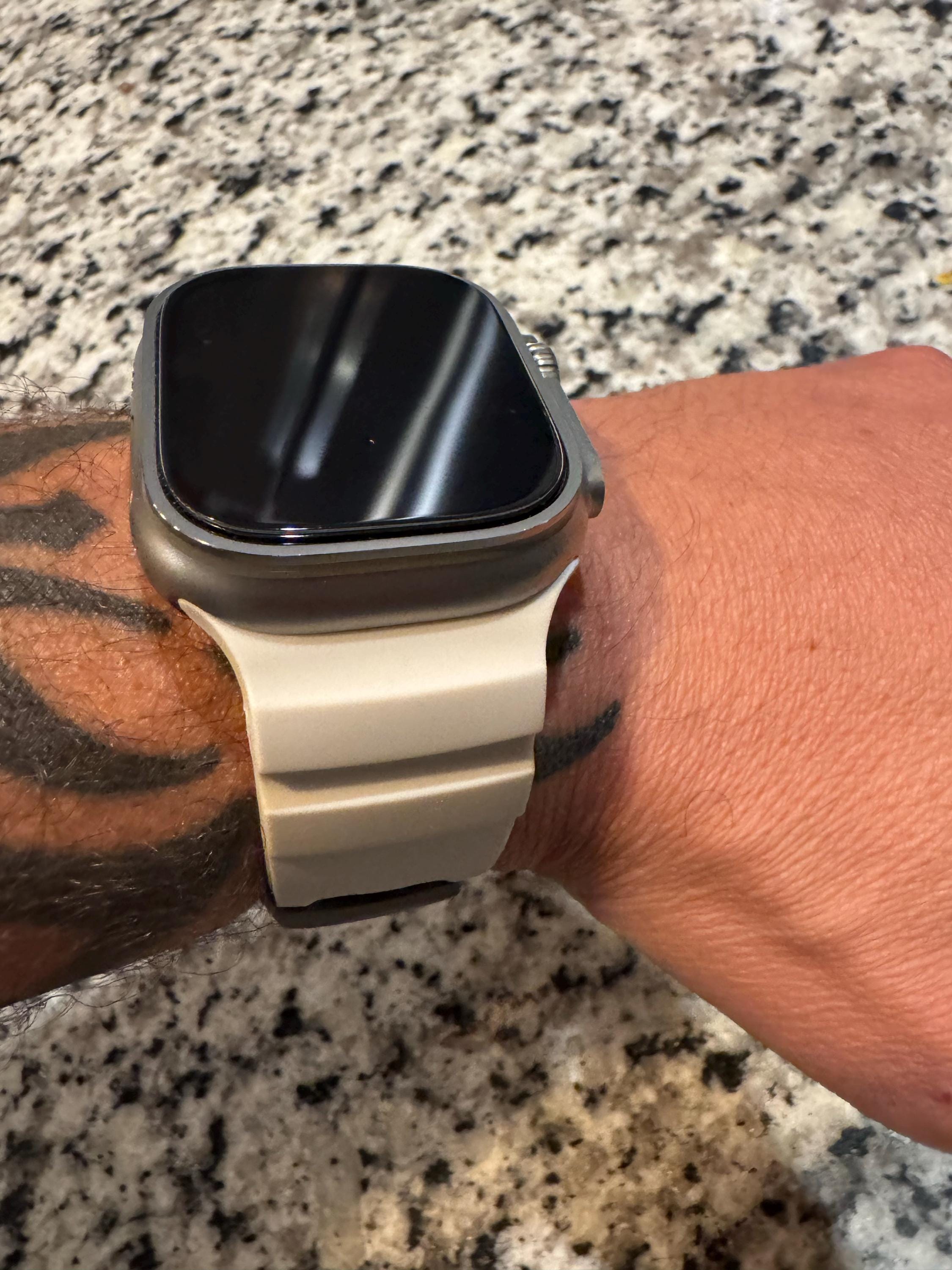 Upgrade Your Wrist Game – Silicone Strap with metal (Titanium) and silicone buckles for Apple Watch Ultra & Series Models. The titanium buckle on these bands match the Ultra finish nicely!!
